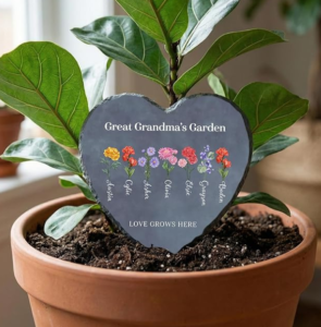 An etched garden stone gives patios or flower beds a heartfelt touch. Add a name, a particular occasion, or a thought-provoking quotation to personalize it.